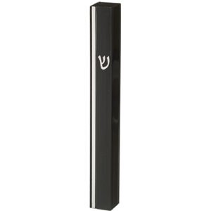 מזוזה פלסטיק שחורה 15 ס"מ "ש" זהב ופס זהב עם פקק גומי