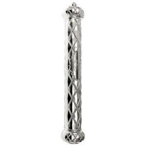 מזוזה פלסטיק כסופה 12 ס"מ "כתר ומעויינים" עם פקק גומי |