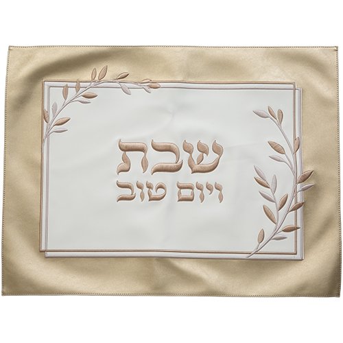 כיסוי חלה מהודר דמוי עור לבן עם הבלטות 42×52 ס"מ
