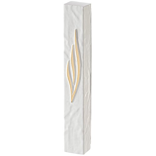 מזוזה "פולימר בטון" שיש גס לבן ש ציפוי זהב 20סמ