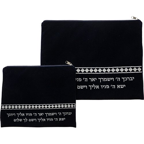 סט טלית תפילין קטיפה עם ריקמה 36×29 ס"מ
