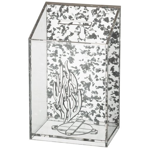 כמות של קופת צדקה פרספקס "האש שלי" - נצנצים כסף 14 ס"מ