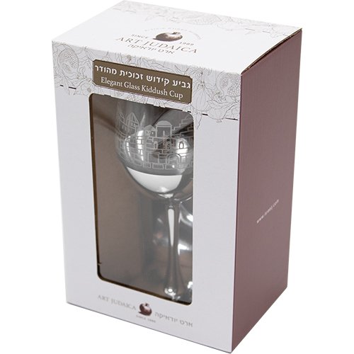 גביע קידוש זכוכית שקוף וכסף "בבא סאלי" 21 ס"מ