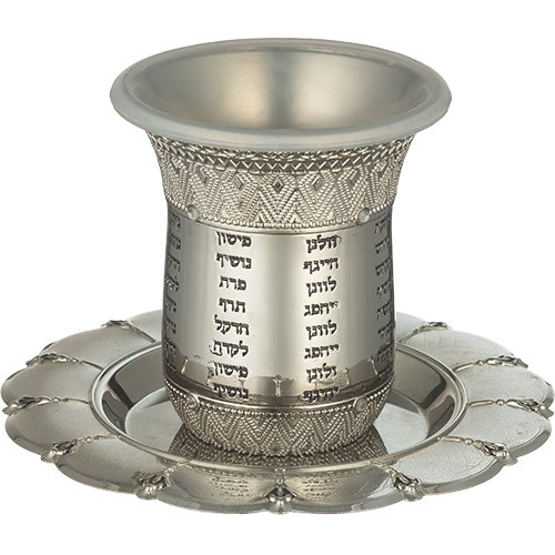 גביע קידוש מהודר 16 ס"מ "נהרות גן עדן" בגימור ניקל תכולה 120 מ"ל
