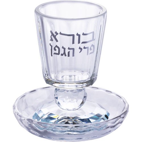 גביע קריסטל מהודר "בורא פרי הגפן" עם אבנים כסף תכולה 130 מ"ל