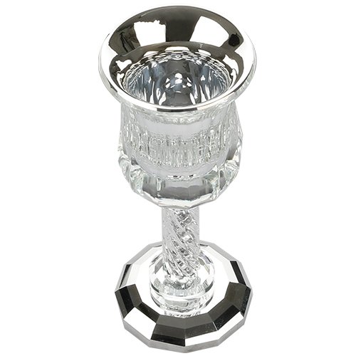 גביע קריסטל רגל אבנים כסף מרובעת 17 ס"מ תכולה 100 מ"ל