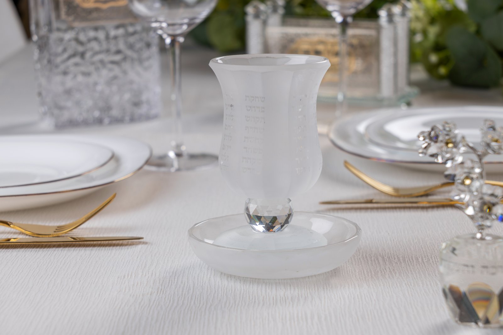 גביע קריסטל מהודר "בורא פרי הגפן" עם אבנים כסף תכולה 130 מ"ל