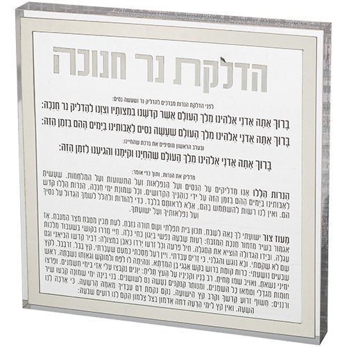 הדלקת נרות חנוכה בלוק פרספקס מסגרת כסף
