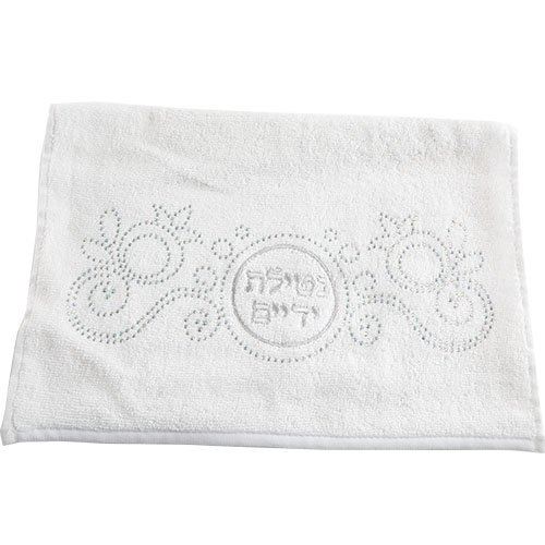 זוג מגבות לבנות "נטילת ידיים" עם שיבוץ אבנים מהודר