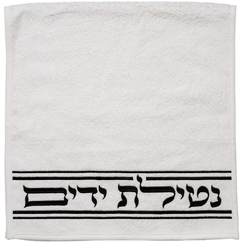 זוג מגבות לבנות "נטילת ידיים" 72×34 ס"מ – רקמה שחורה