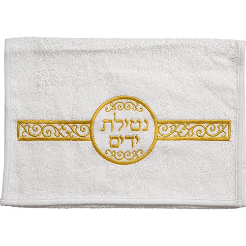 זוג מגבות לבנות עם ריקמה "נטילת ידיים" 72*34 ס"מ