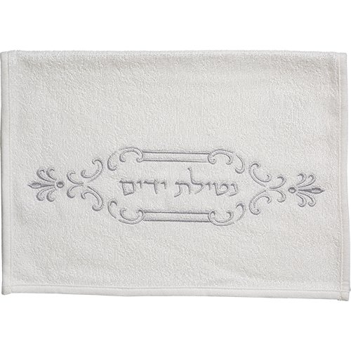 זוג מגבות לבנות עם ריקמה "נטילת ידיים" 72*34 ס"מ