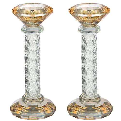 זוג פמוטי קריסטל מהודרים עם אבנים לבנות 16.5 ס"מ