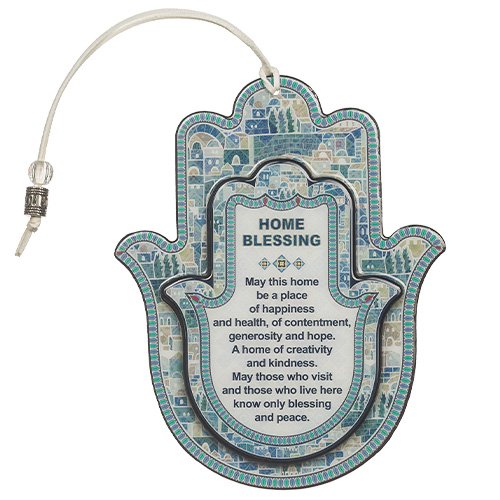 חמסה עץ אפוקסי ברכת הבית אנגלית גוון כחול 18.5 ס"מ