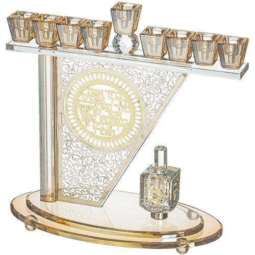 חנוכייה קריסטל מהודרת עם פלקטה ואבנים 2728 ס"מ