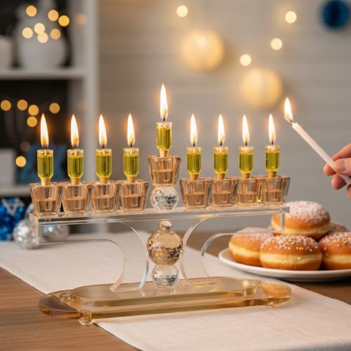 חנוכיית קריסטל מהודרת עם בסיס 7×28 ס"מ