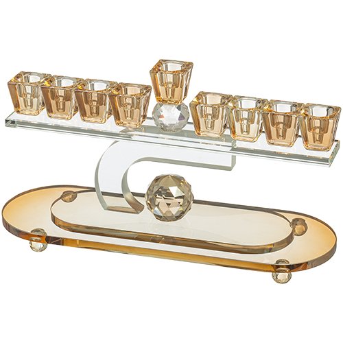 חנוכייה מתכת קנים זהב עם כד 18*16 ס"מ