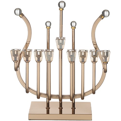 חנוכיית מתכת "נבל" מהודרת ציפוי רוז גולד עם קנים מ