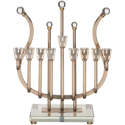 חנוכיית מתכת "נבל" עם ראשי קריסטל גימור זהב 46 ס"מ