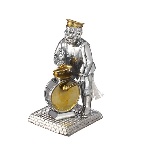 חסיד יושב מפולירייזן מוכסף עם רגלי בד כסף מנגן