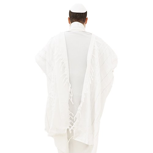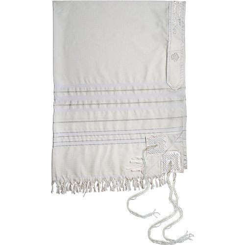 טלית "מופת" חתנים גודל 60 – 185×140 ס"מ פסים כסף עם עטרה פיו