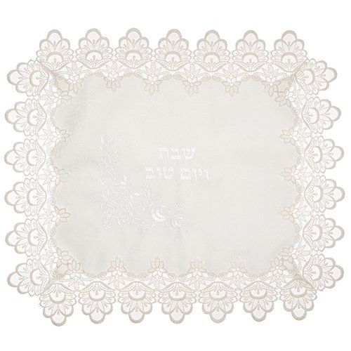 כיסוי חלה מהודר דמוי עור לבן עם הבלטות 42×52 ס"מ