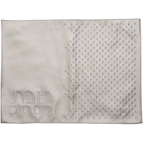 כיסוי חלה מהודר דמוי עור לבן וכסף עם רקמה 42x52 ס"מ