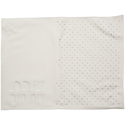 כיסוי חלה מהודר דמוי עור לבן עם הבלטות 42x52 ס"מ