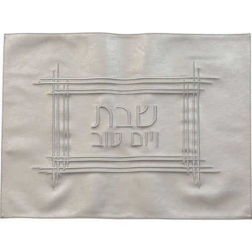כיסוי חלה מהודר דמוי עור לבן וכסף עם רקמה 42x52 ס"מ