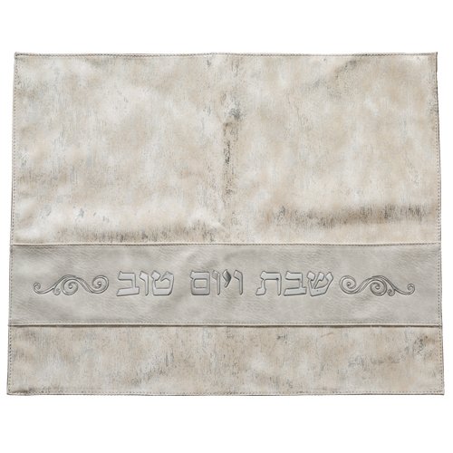 כיסוי חלה מהודר דמוי עור לבן וכסף עם רקמה 42x52 ס"מ