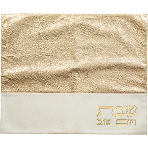 כיסוי חלה מהודר דמוי עור לבן עם זהב 4555סמ
