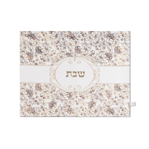 כיסוי חלה מהודר דמוי עור לבן פרחים אפורים 4555סמ