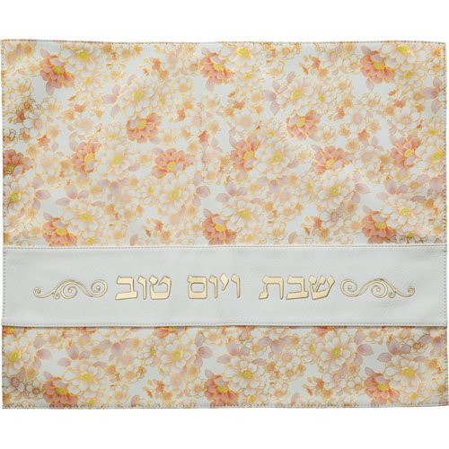 כיסוי חלה מהודר דמוי עור לבן פרחים ורודים 4555סמ