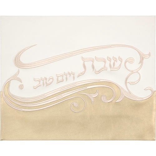 כיסוי חלה מהודר דמוי עור לבן עם הבלטות 42×52 ס"מ