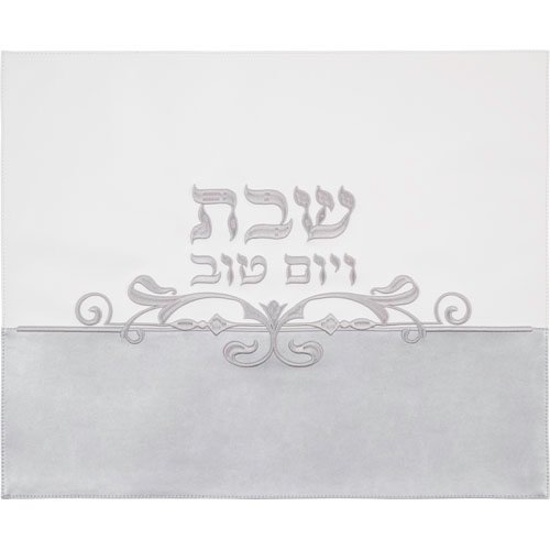 כיסוי חלה מהודר דמוי עור +PVC לבן "קידוש" 42×52ס"מ