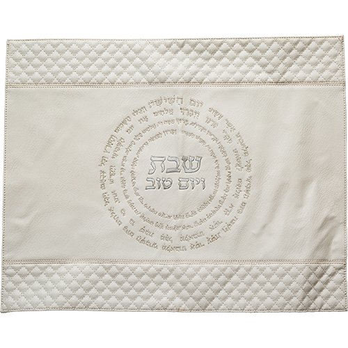 כיסוי חלה מהודר דמוי עור +PVC לבן "קידוש" 42x52ס"מ