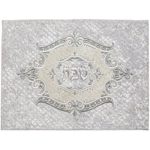 כיסוי חלה פיו שבת קודש עיטורים קטיפה אפור וכסף 60.5X45
