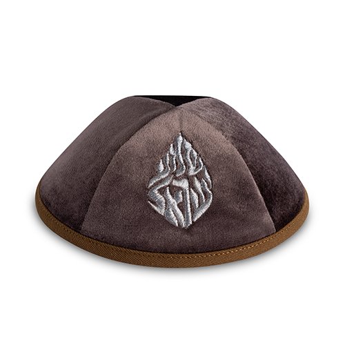 כיפה ארטמן קטיפה חום רקמה שמע ישראל גודל 3