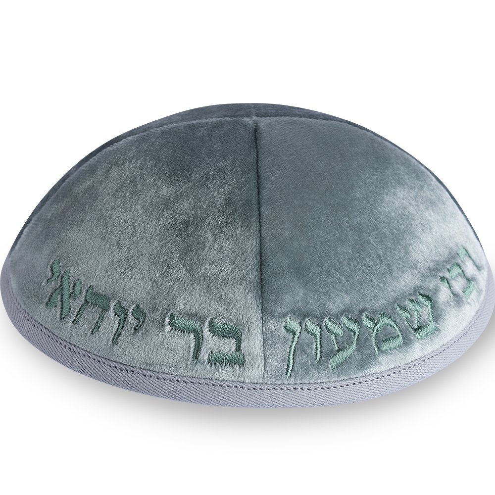 כיפה ארטמן קטיפה ירוק בהיר רקמה רבי שמעון בר יוחאי גודל 3