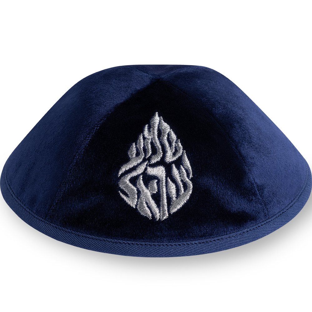 כיפה ארטמן קטיפה כחול כהה רקמה שמע ישראל גודל 3