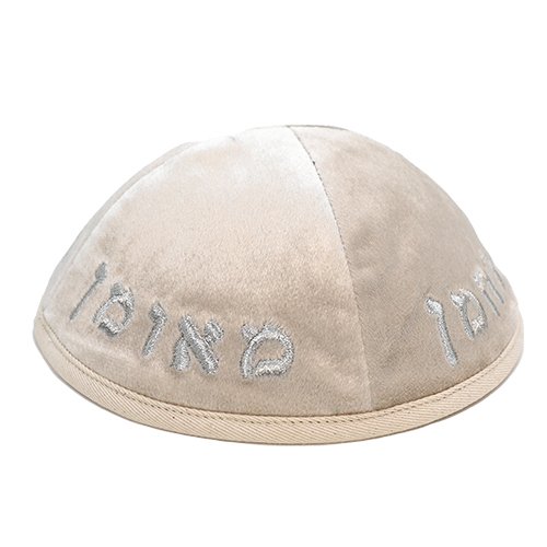 כיפה ארטמן קטיפה נחמן בז עם רקמה כסף גודל 4
