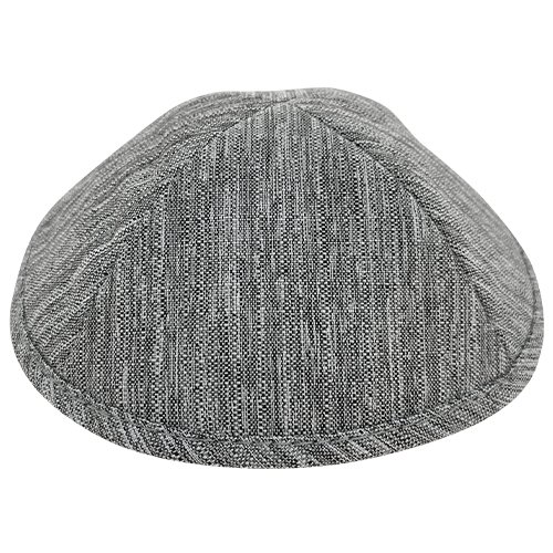 כיפה מהודרת משי פשתן גווני אפור לבן 17 ס"מ