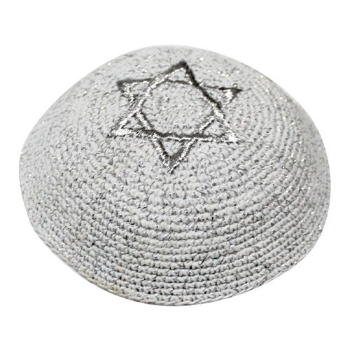 כמות של כיפה סרוגה 16 ס"מ נטזים כסף עם רקמה מגן דוד