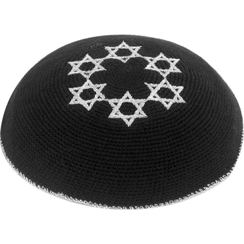 כמות של כיפה סרוגה 16 ס"מ 6 מגיני דוד כסף במרכז
