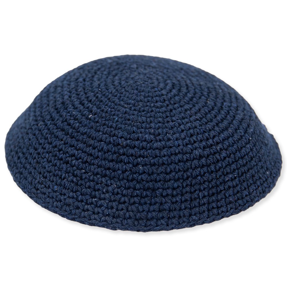 כיפה סרוגה 19 ס"מ כחול כהה חלק – 12 יח