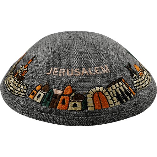 כמות של כיפה פשתן עם רקמה 19 ס"מ