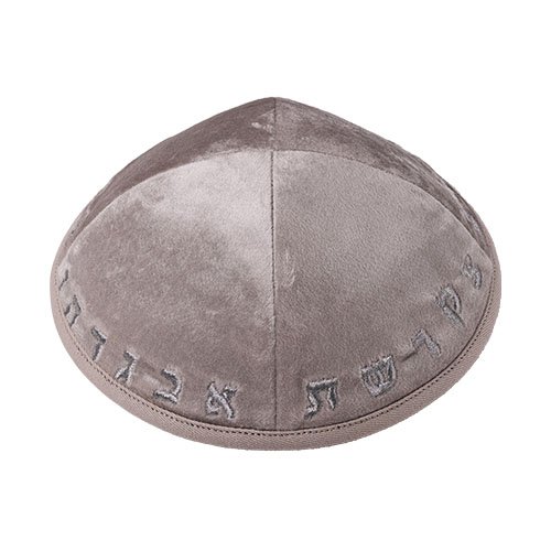כיפה קטיפה "ארט מן" עם ריקמה אותיות גודל 3 – אפור בהיר