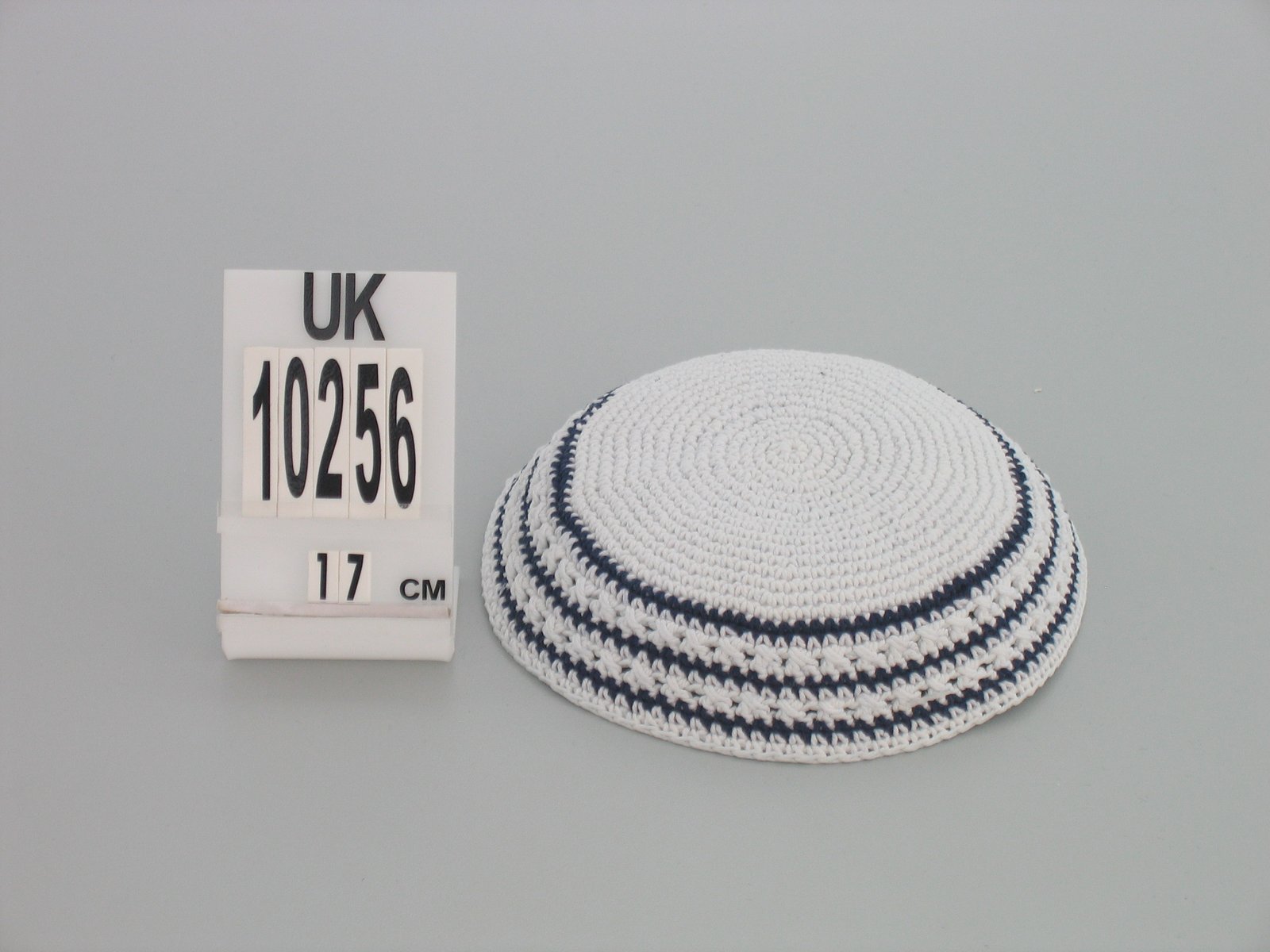 כיפה ד.מ.צ. לבן עם פס כסף 18 ס"מ