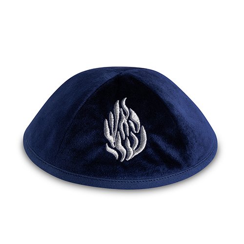 כיפה קטיפה "ארט-מן" עם ריקמה האש שלי גודל 3 – כחול כהה