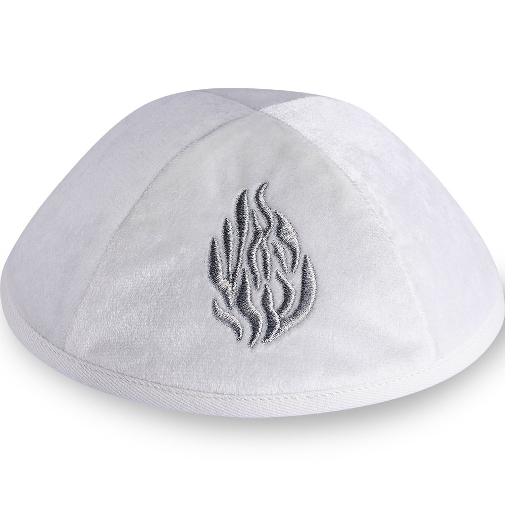 כיפה קטיפה "ארט-מן" עם ריקמה האש שלי גודל 4 – לבן
